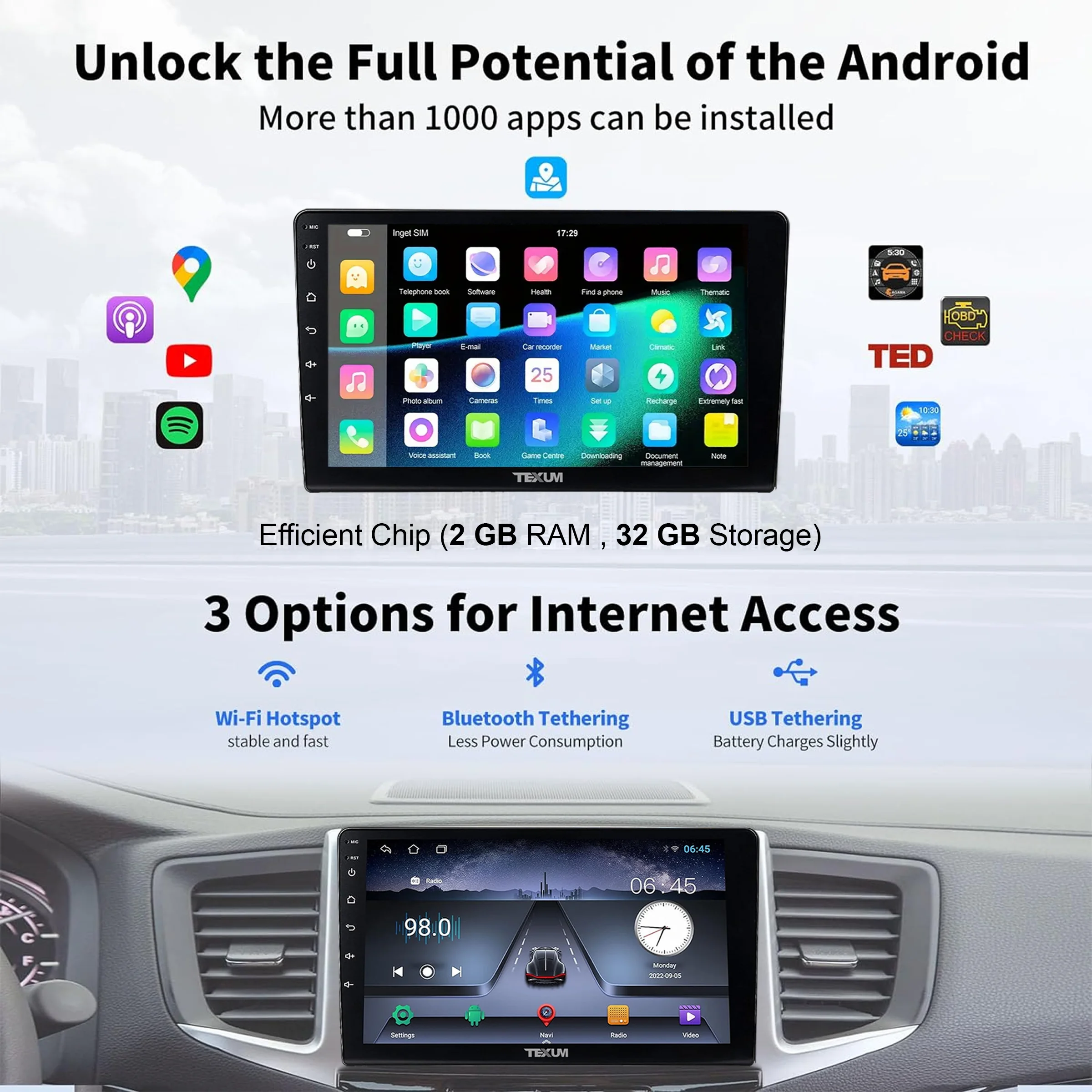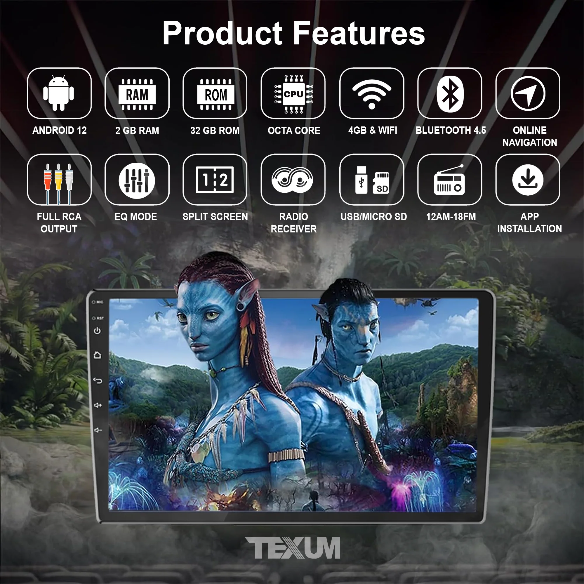 "TEXUM 9 INCH Full Double Din Ultra HD Car Screen Stereo – Ultimate In-Car Entertainment