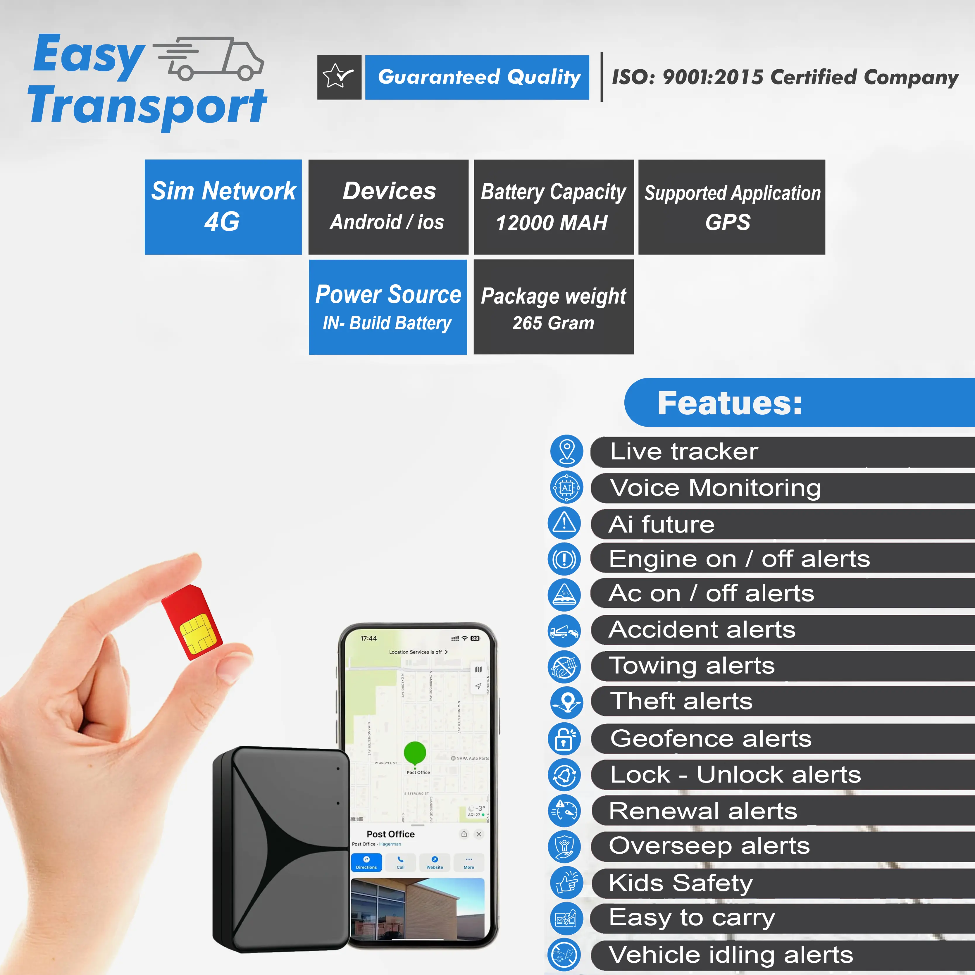 "A TGT-15 magnetic GPS tracker is a specific type of GPS tracking device designed with a strong magnet for easy and temporary attachment to metal surfaces, typically vehicles. Here’s a detailed description of a magnetic GPS tracker:Magnetic GPS trackers are compact and often encased in a durable, weather-resistant housing. They feature one or more powerful magnets integrated into the device, allowing them to securely attach to metal surfaces without the need for permanent installation or hardware.