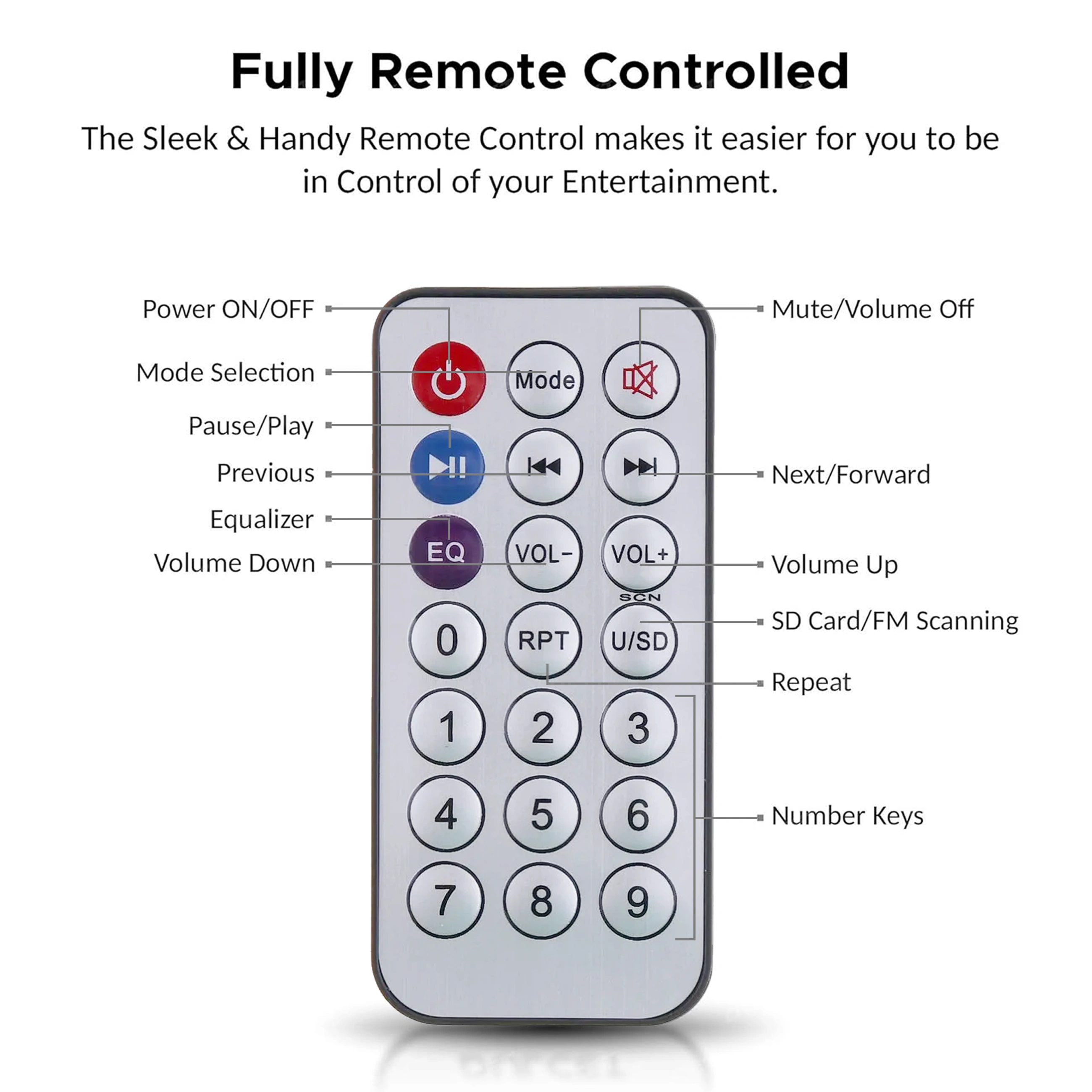 Remote Control: Comes with a remote for effortless control of stereo settings.