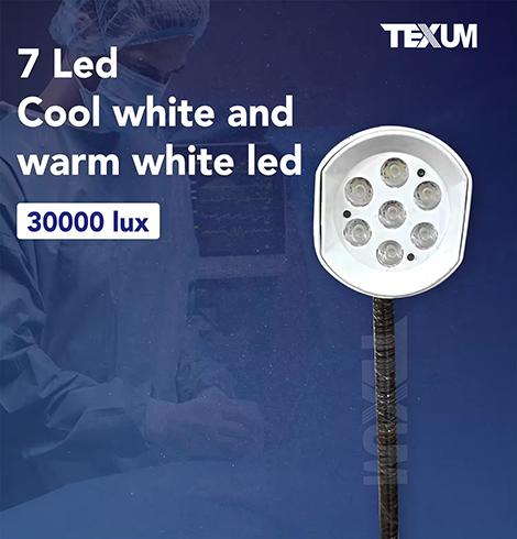 Illuminate your surgical procedures with precision and clarity using Texum Surgical Lights. Engineered with high-intensity LED technology, our surgical lights deliver exceptional brightness, shadowless illumination, and energy efficiency. Whether in an operating room, clinic, or dental office, Texum Surgical Lights provide reliable performance to ensure the best outcomes for medical professionals and their patients. Our lights are fully adjustable, feature a flexible arm for optimal positioning, and are both CE and FDA certified, guaranteeing the highest standards of safety and quality.