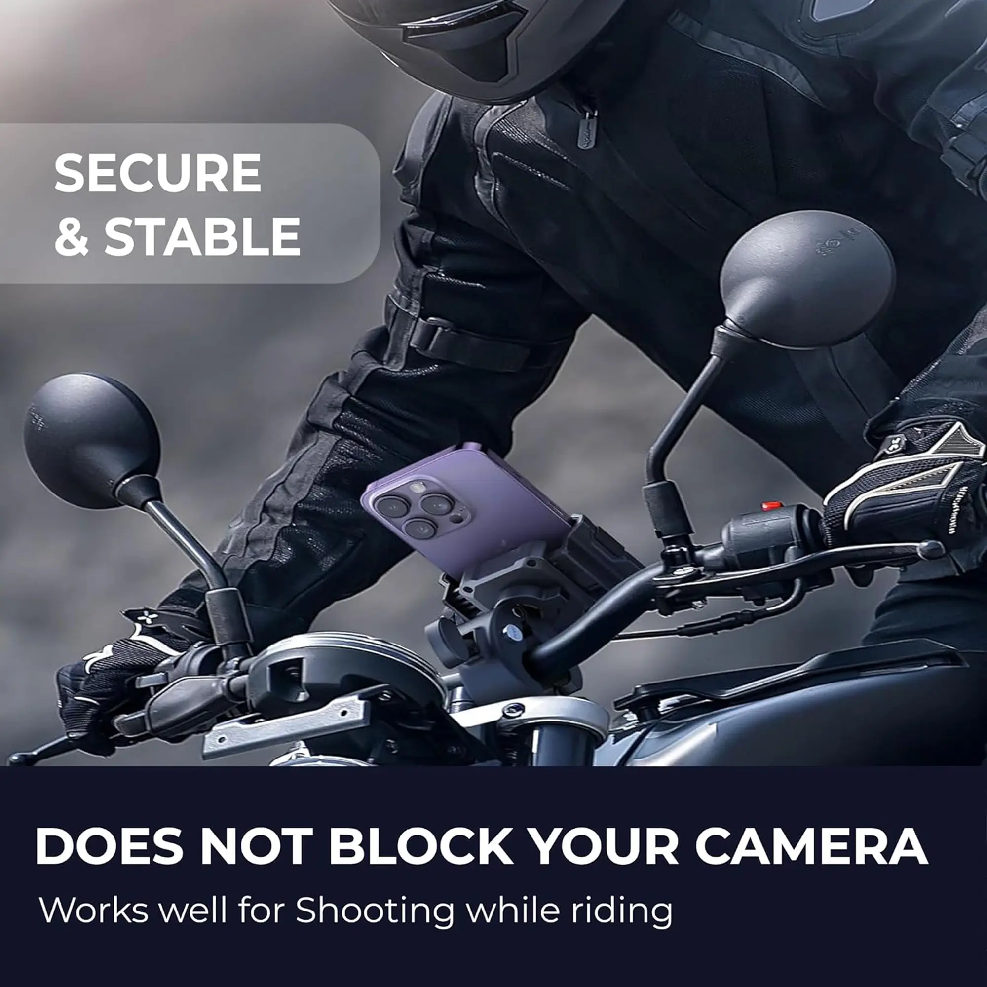 Texum Universal Bike Mount Holder Metal Body 360 Degree Rotating Handlebar Metal Body Cradle Stand for Bicycle, Motorcycle, Fits All Smartphones (Black) METERIAL:-Aluminium Alloy, Heat and Corrosion Resistant, And Resistant To Flame Retardant, Very High Safety Factor. 360 DEGREE ROTATION:-360° Rotatable Design To Make Your Mobile Freely Adjusted To Any Angles Mobile Width Adjuster Screw Nut On Mobile Rack Side To Make The Handlebar Mobile Holder WIDE COMPACBILITY:- 10-24V output from motorcycle battery with 9.6cm max. width to charge/fit for all 4-6 inch cellphones.it can be mounted on all 22-30mm handlebars of ATV/ Sled Car/ Motorcycles... EASY TO INSTALL:- Using our complete mini tool makes phone holder easier mount to your bike or motorcycle, just simply attach to the handlebar and locked with a screw, secure your phone on it then you good to go.